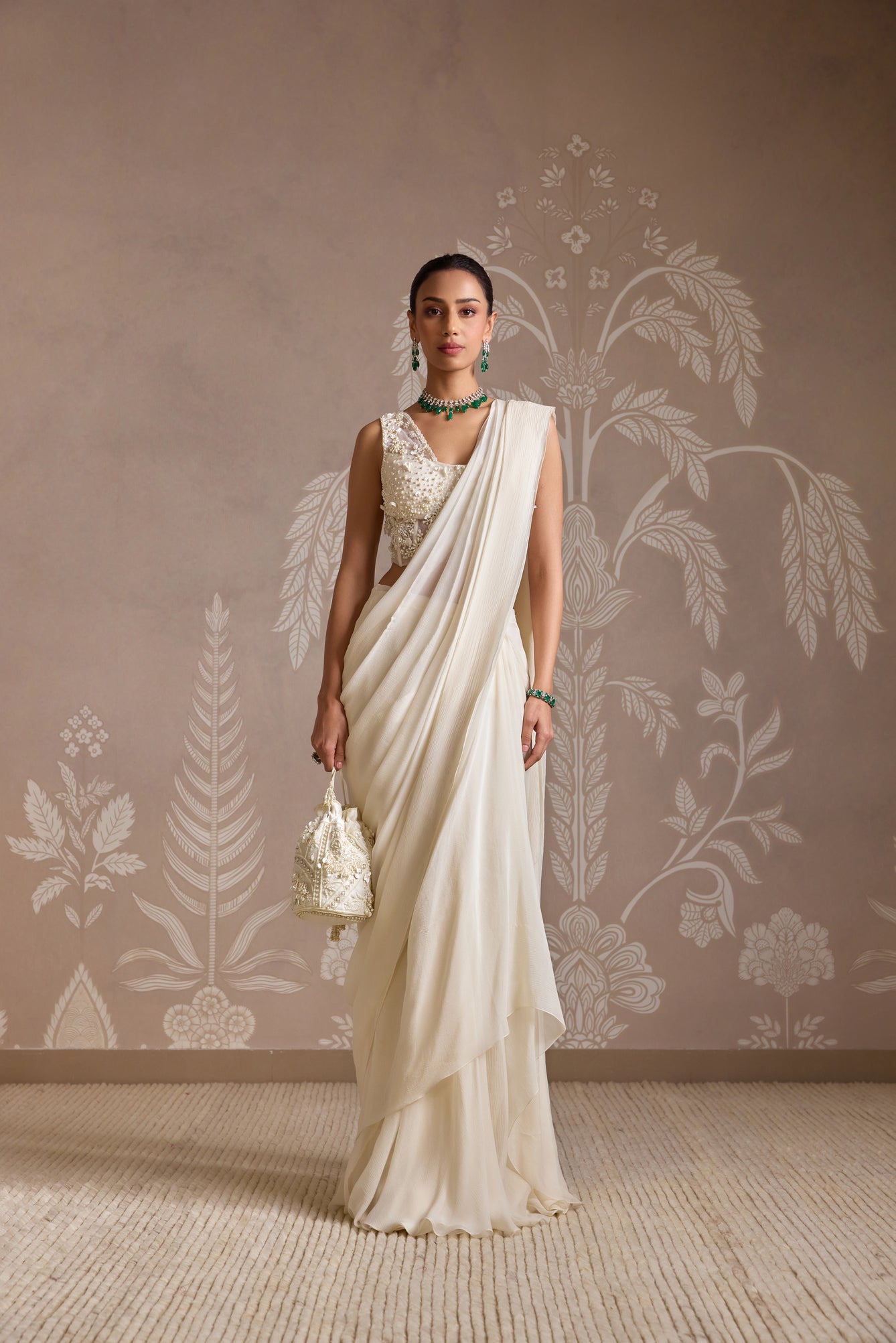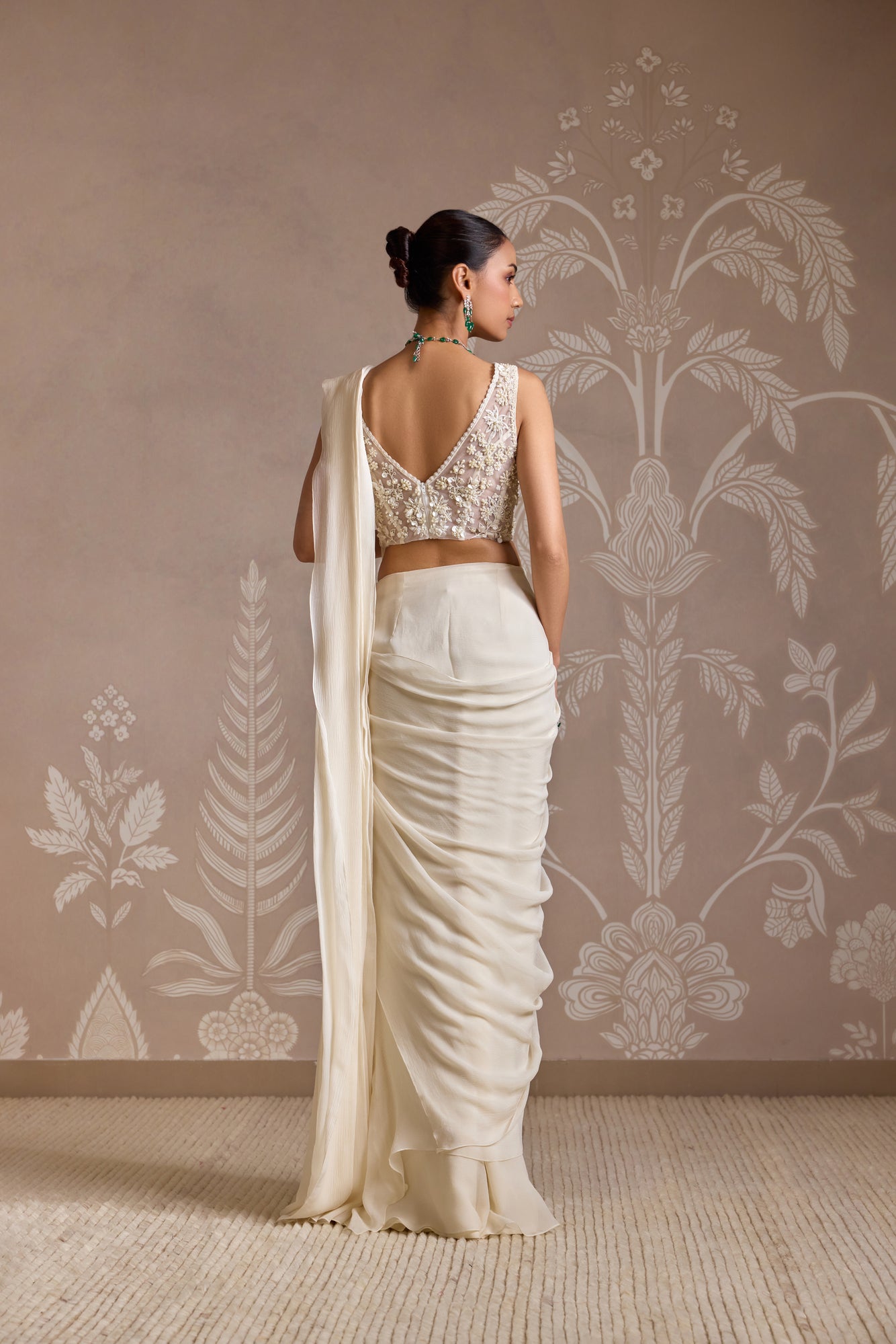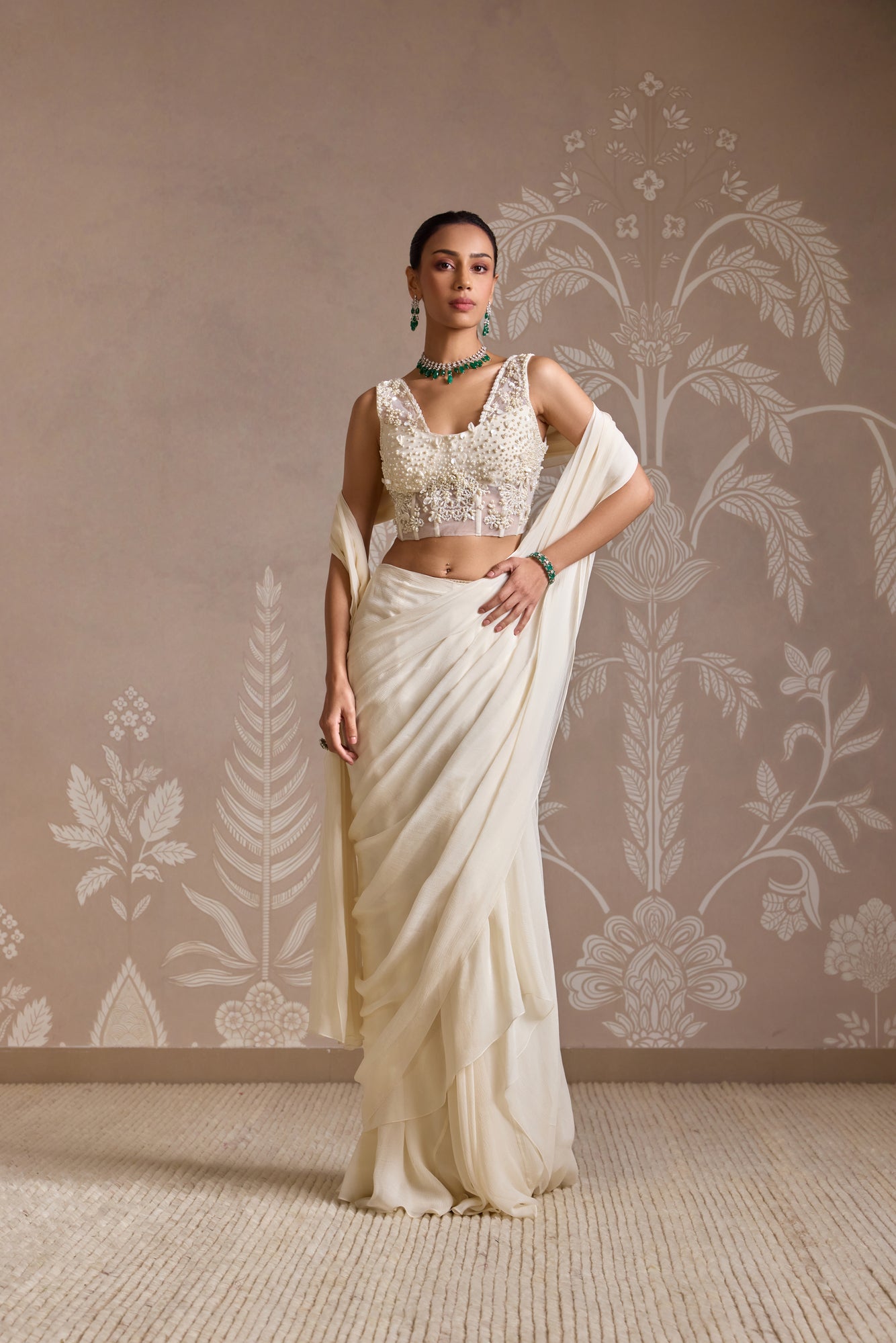Net Embroidered Corset Paired with Chiffon Ruffled Draped Saree
