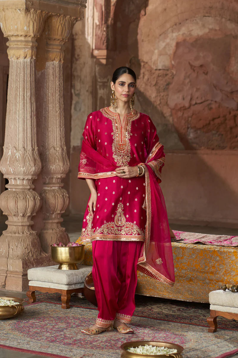 Mehwish - Rani Hotpink Short Kurta With Salwar And Dupatta