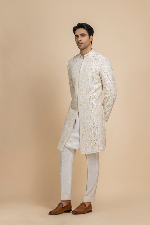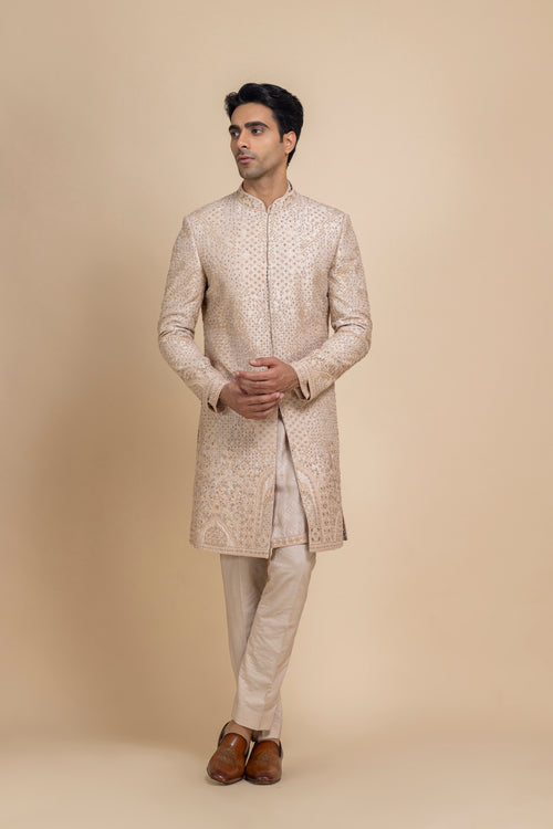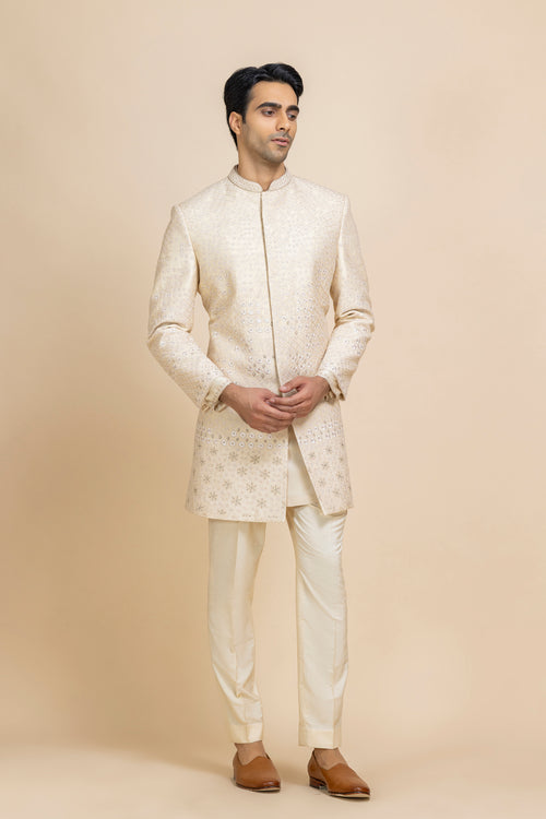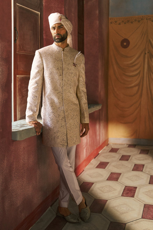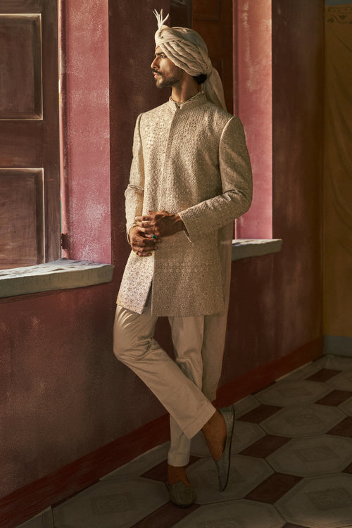 Imagine yourself walking into a room, wearing a sherwani that exudes regal charm and unmatched elegance. At Lotus Bloom Official, the collection of Men’s Sherwanis is all about making you feel confident and sophisticated on your special day. Crafted from luxurious fabrics like raw silk, each piece is designed with intricate details that add to its grandeur. Every design promises to turn heads and leave a lasting impression. These sherwanis are...