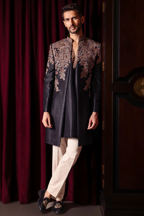 Imagine yourself walking into a room, wearing a sherwani that exudes regal charm and unmatched elegance. At Lotus Bloom Official, the collection of Men’s Sherwanis is all about making you feel confident and sophisticated on your special day. Crafted from luxurious fabrics like raw silk, each piece is designed with intricate details that add to its grandeur. Every design promises to turn heads and leave a lasting impression. These sherwanis are perfect for weddings, festive celebrations, or any occasion where you want to stand out in style.