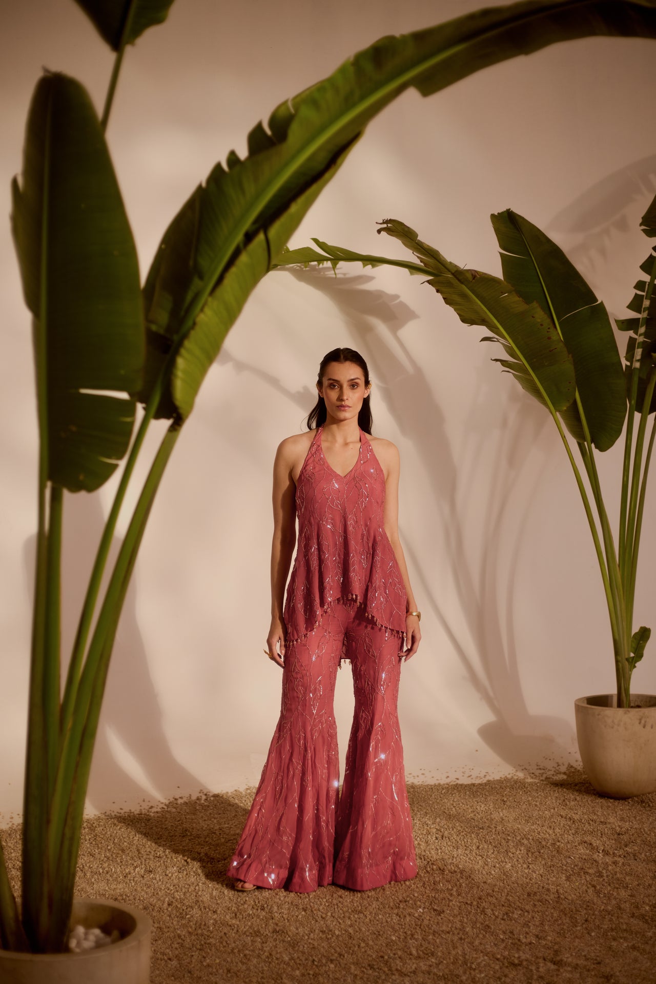 Viella Peplum Set - Halter Neck Asymmetrical Peplum With Fit'n'Flare Pant Set