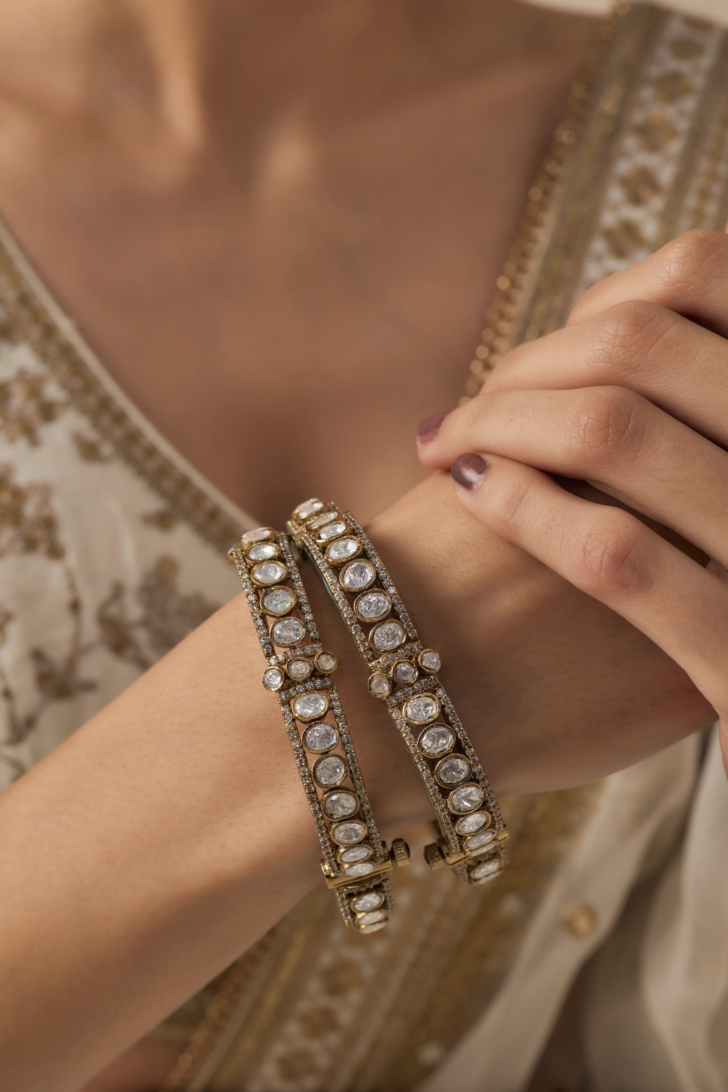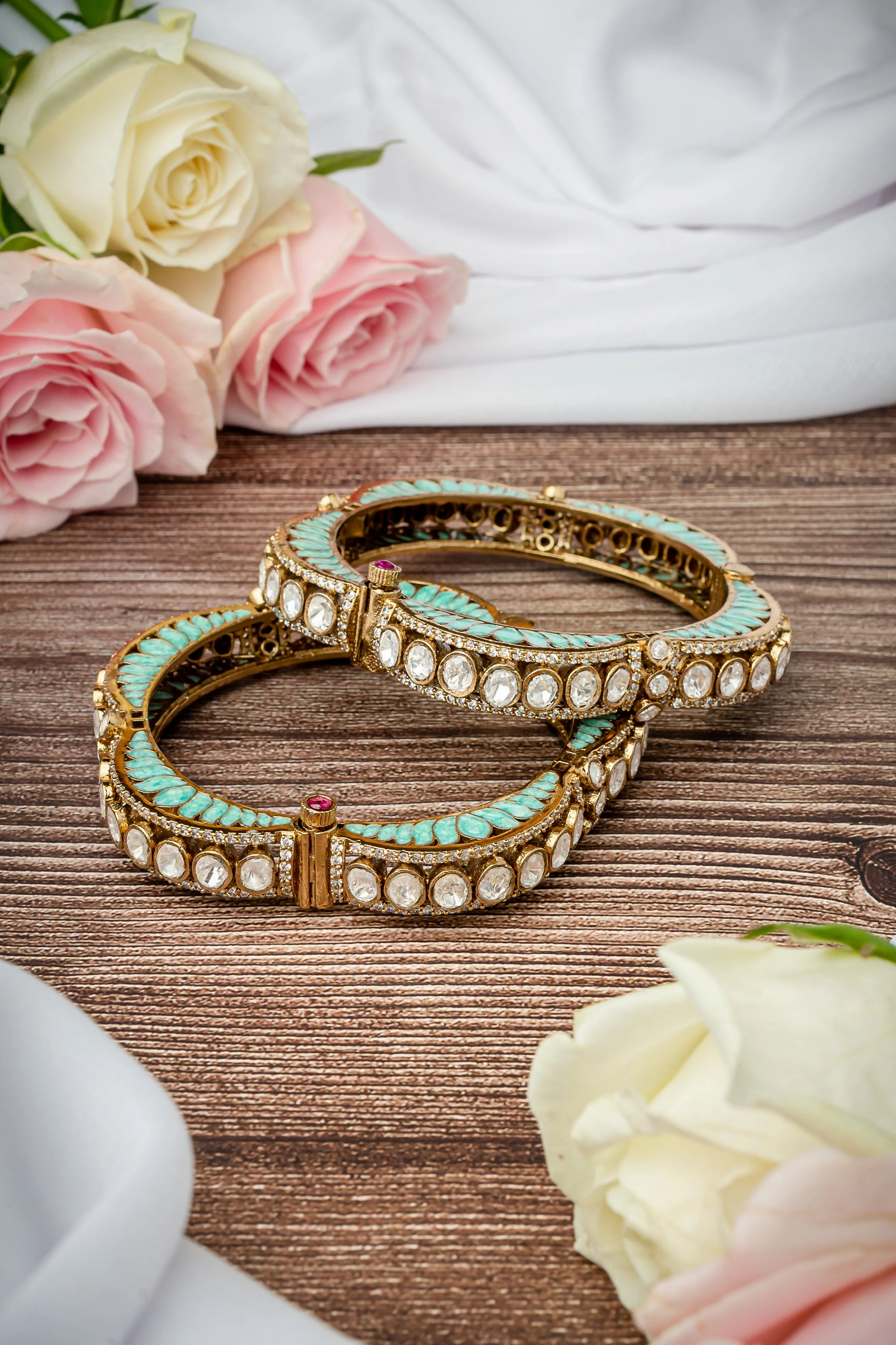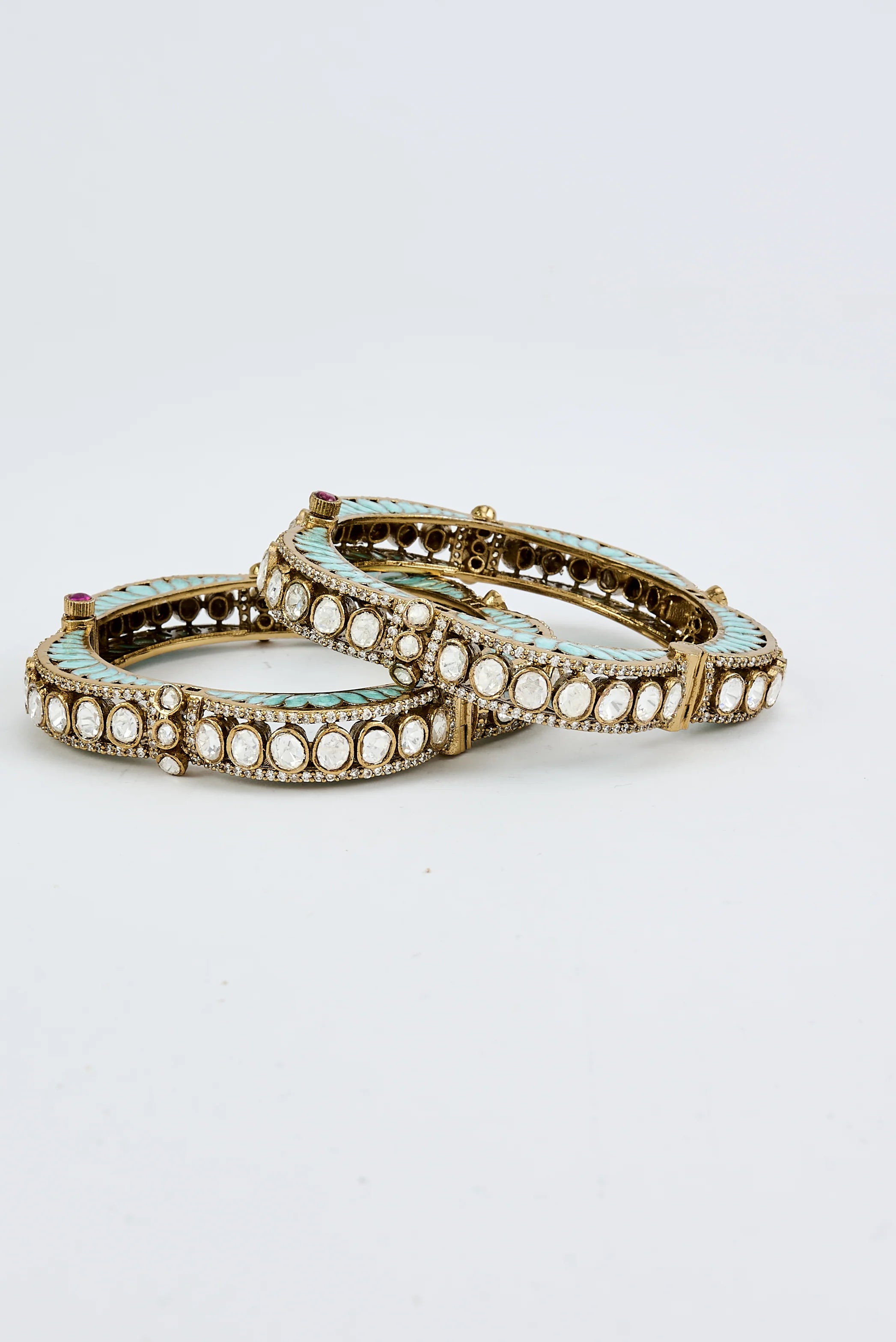 - Exquisite Design: Handcrafted bangles with intricate turquoise enamel detailing and sparkling white stones.