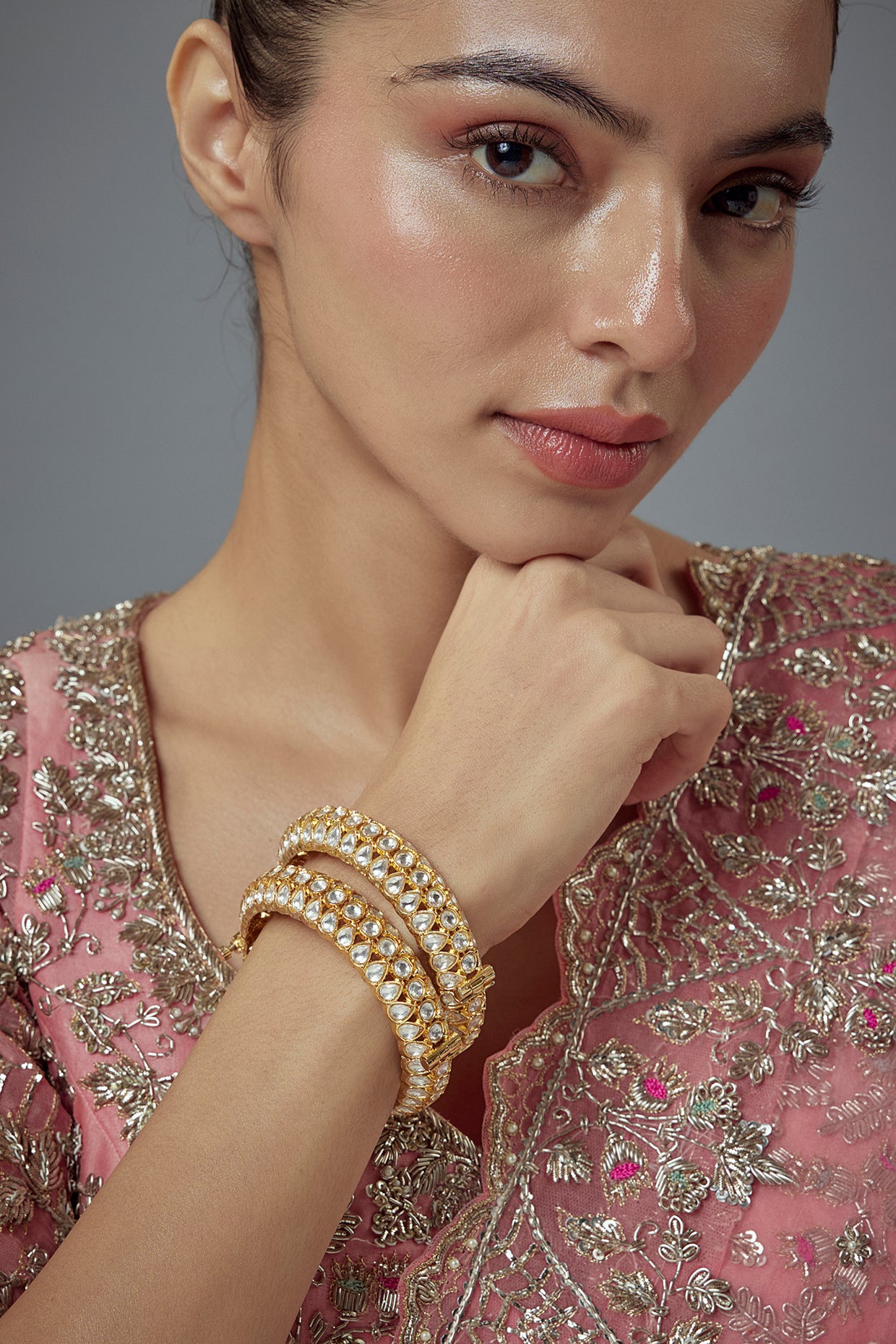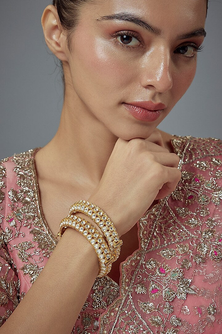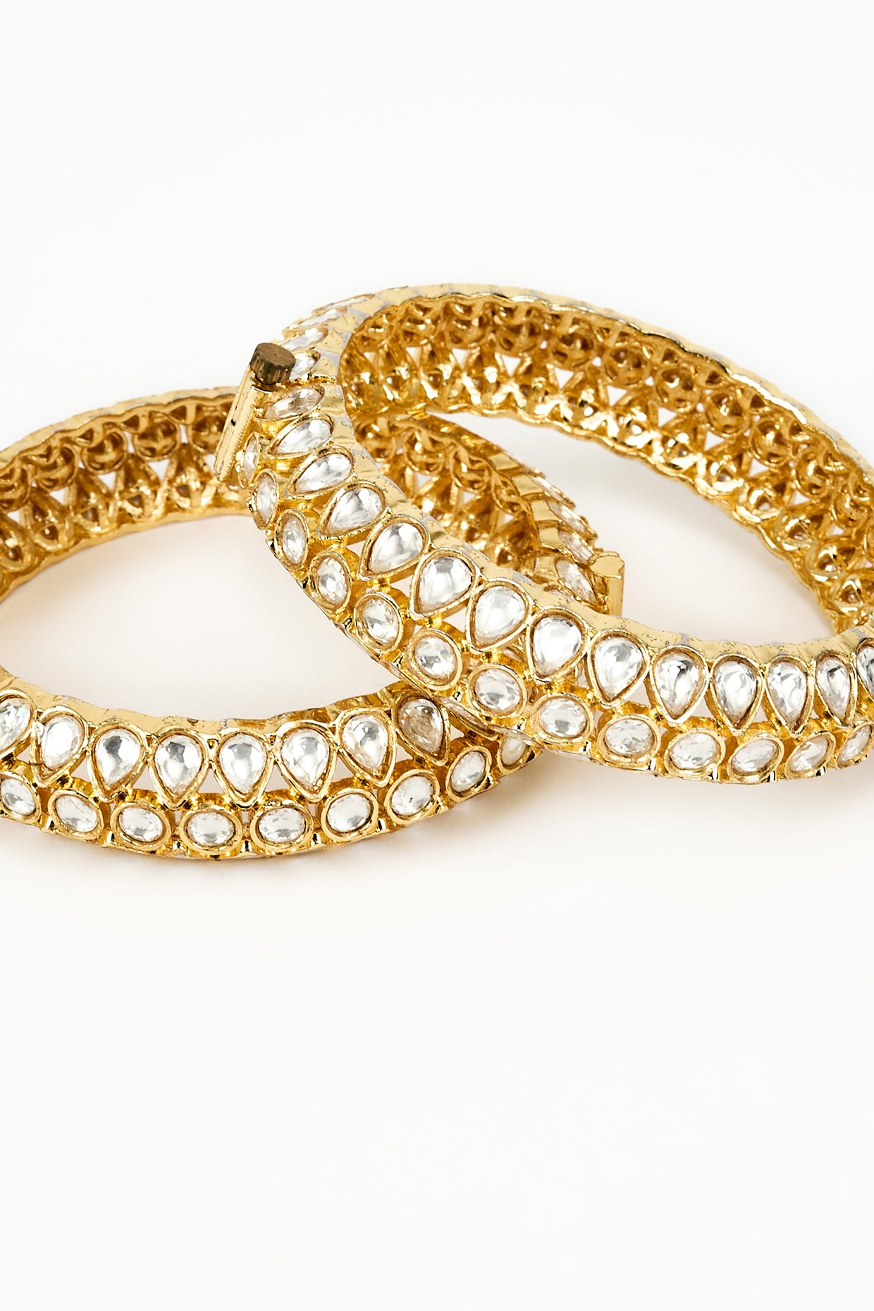 Saadgi Gold Plated Kundan, Polki Womens Pair of bangles (2.4,2.6)