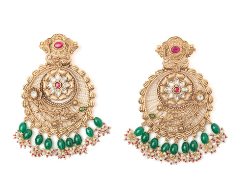 Isvaraah 2.0 Gold Plated Green Womens Pair of Chandbali Earrings