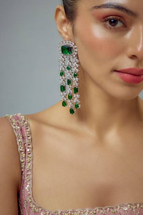 Florence Silver Plated Green Zircon Womens Pair of Danglers Earrings