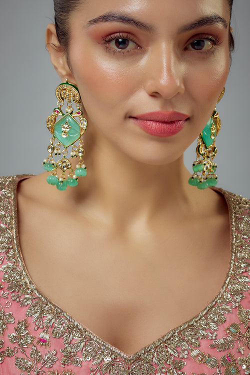 Saadgi Gold Plated Green Kundan, Polki Womens Pair of Danglers Earrings