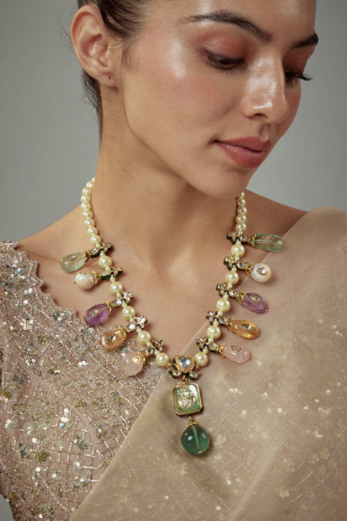 Florence Gold Plated Multicolored Contemporary Womens Short Necklace Set