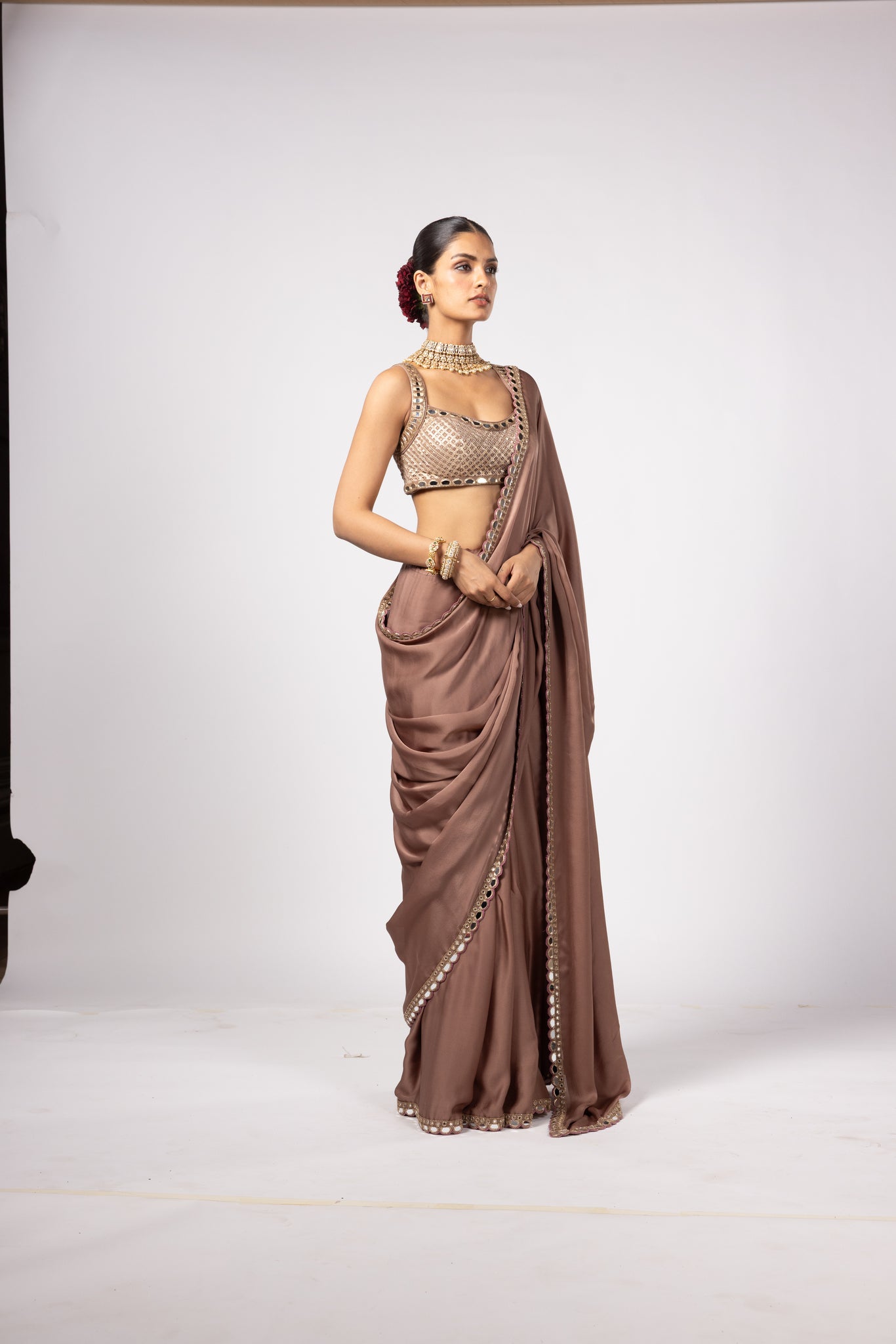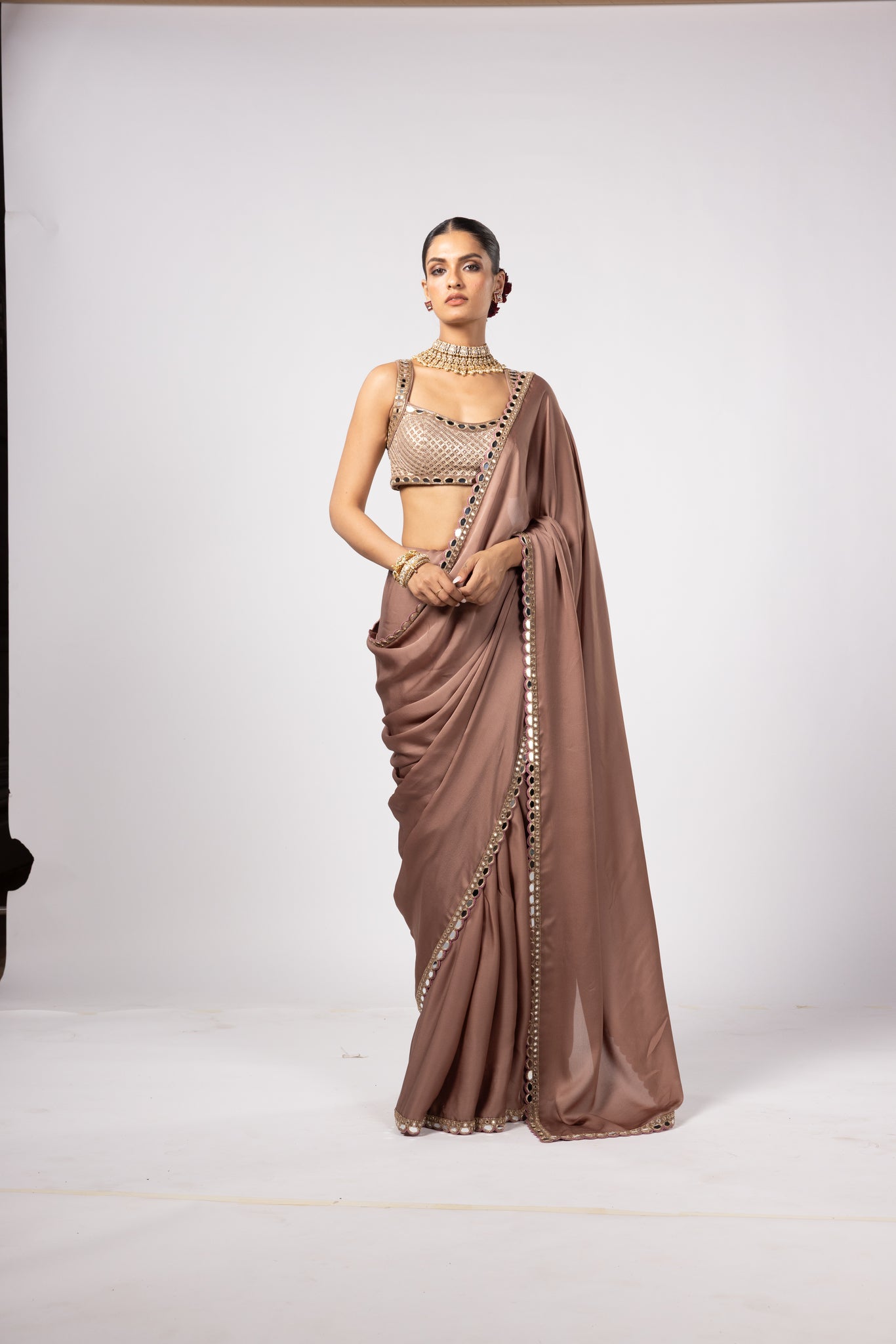 Color - Blouse-deep beige; Saree-deep beige