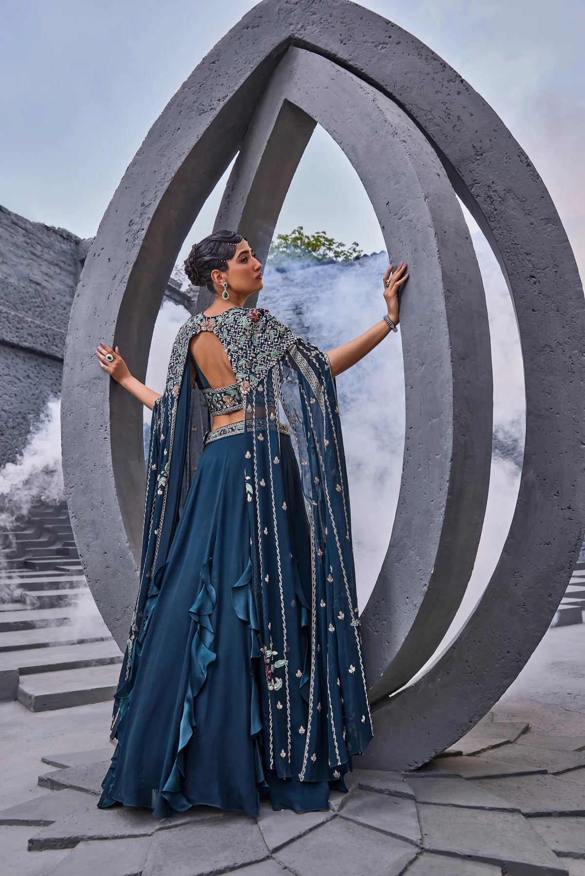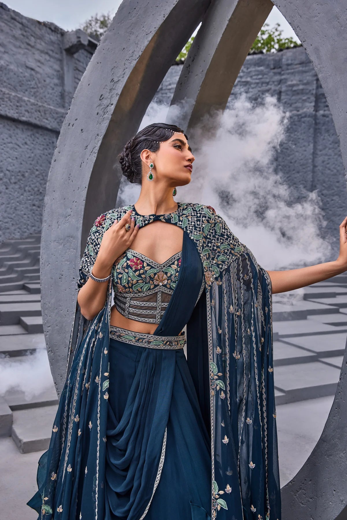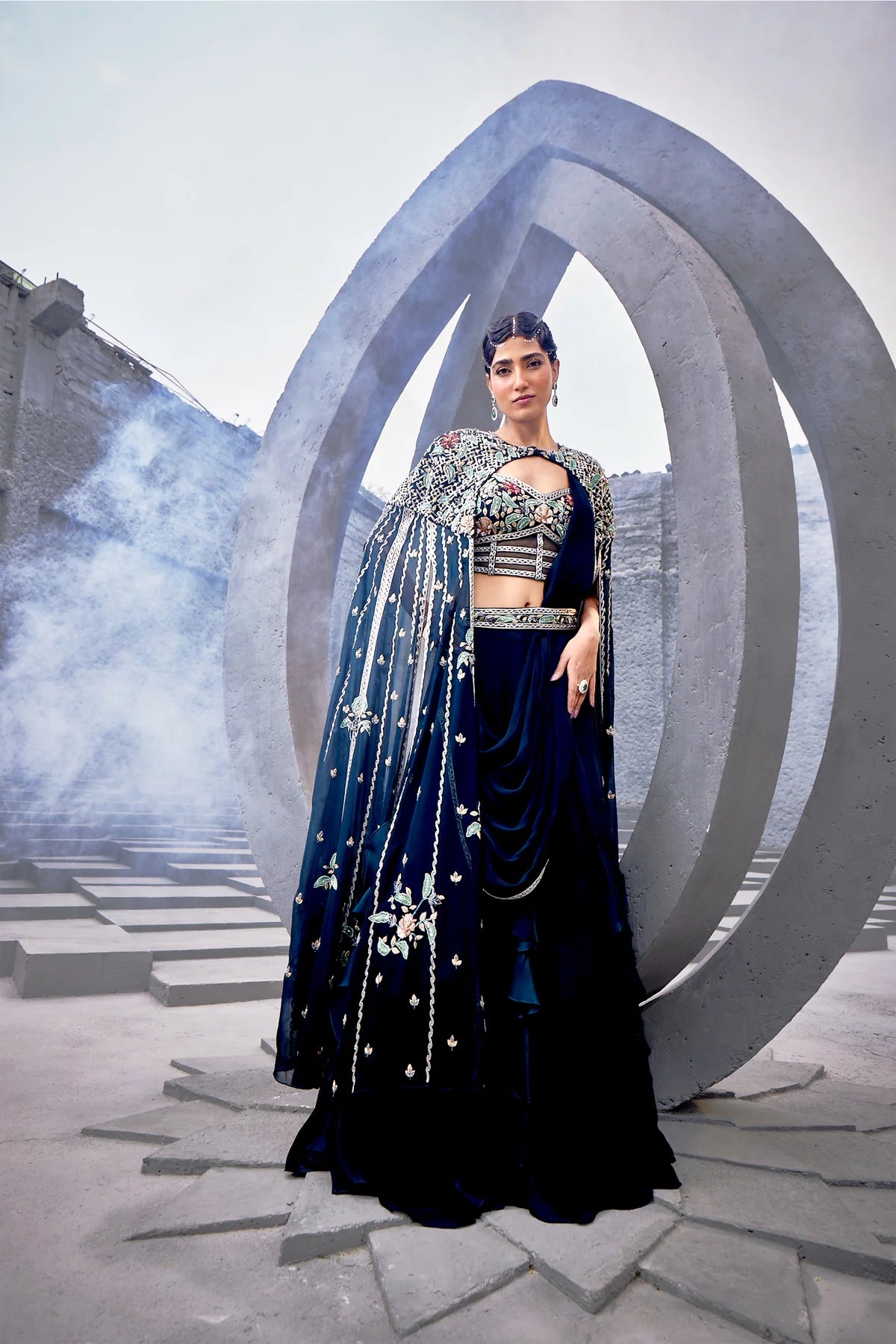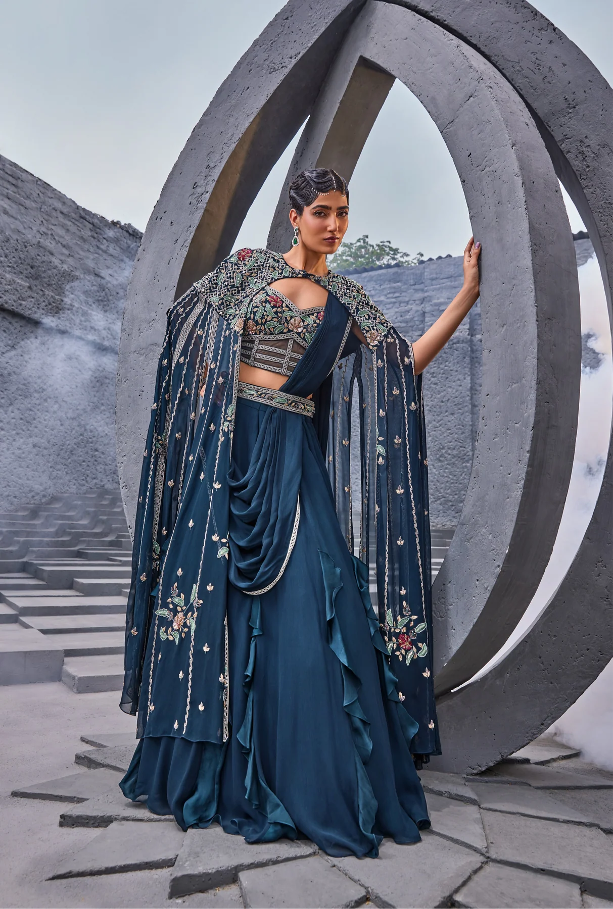 (Cape: 60 inches, Choli: 16 inches, Saree: 45 inches)