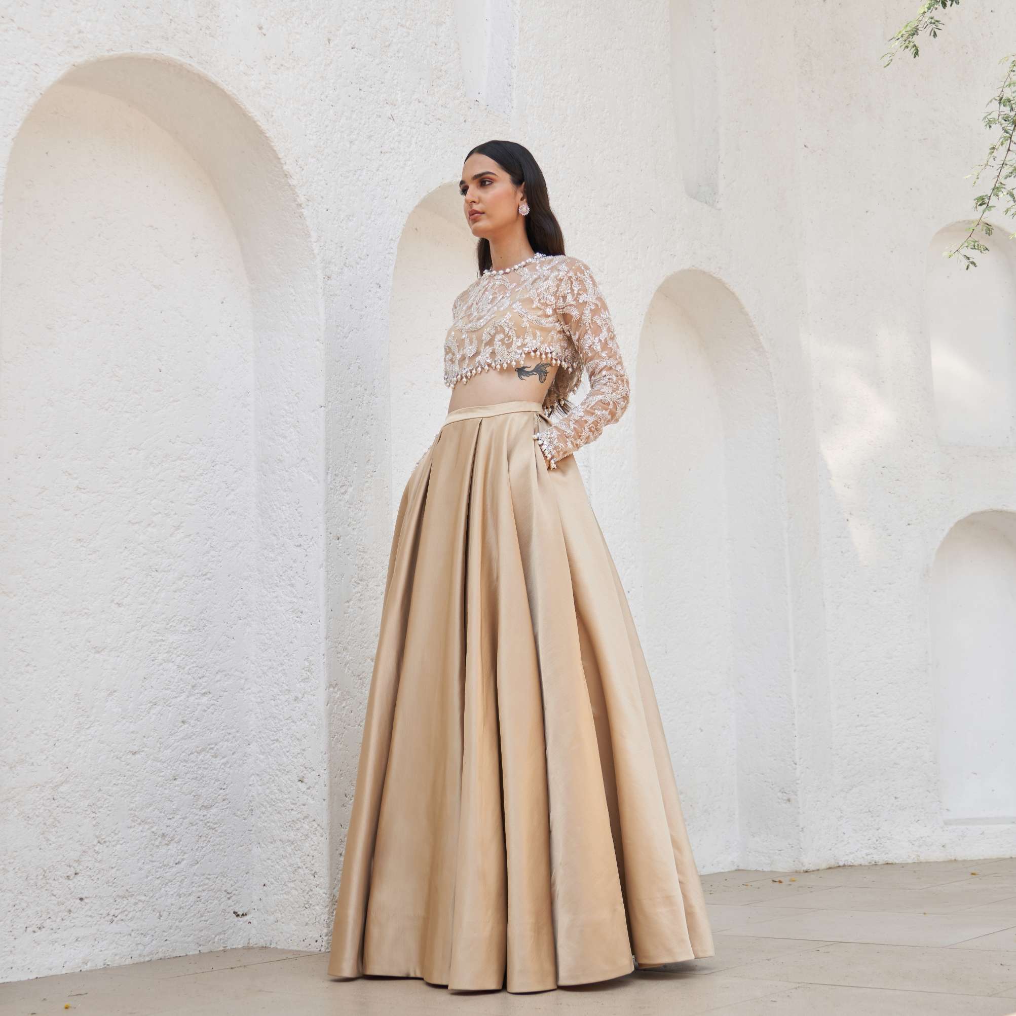 EMBROIDERED BLOUSE AND LEHENGA SET