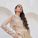 Composition : HAND EMBROIDERY, NET, CREPE, MADRID