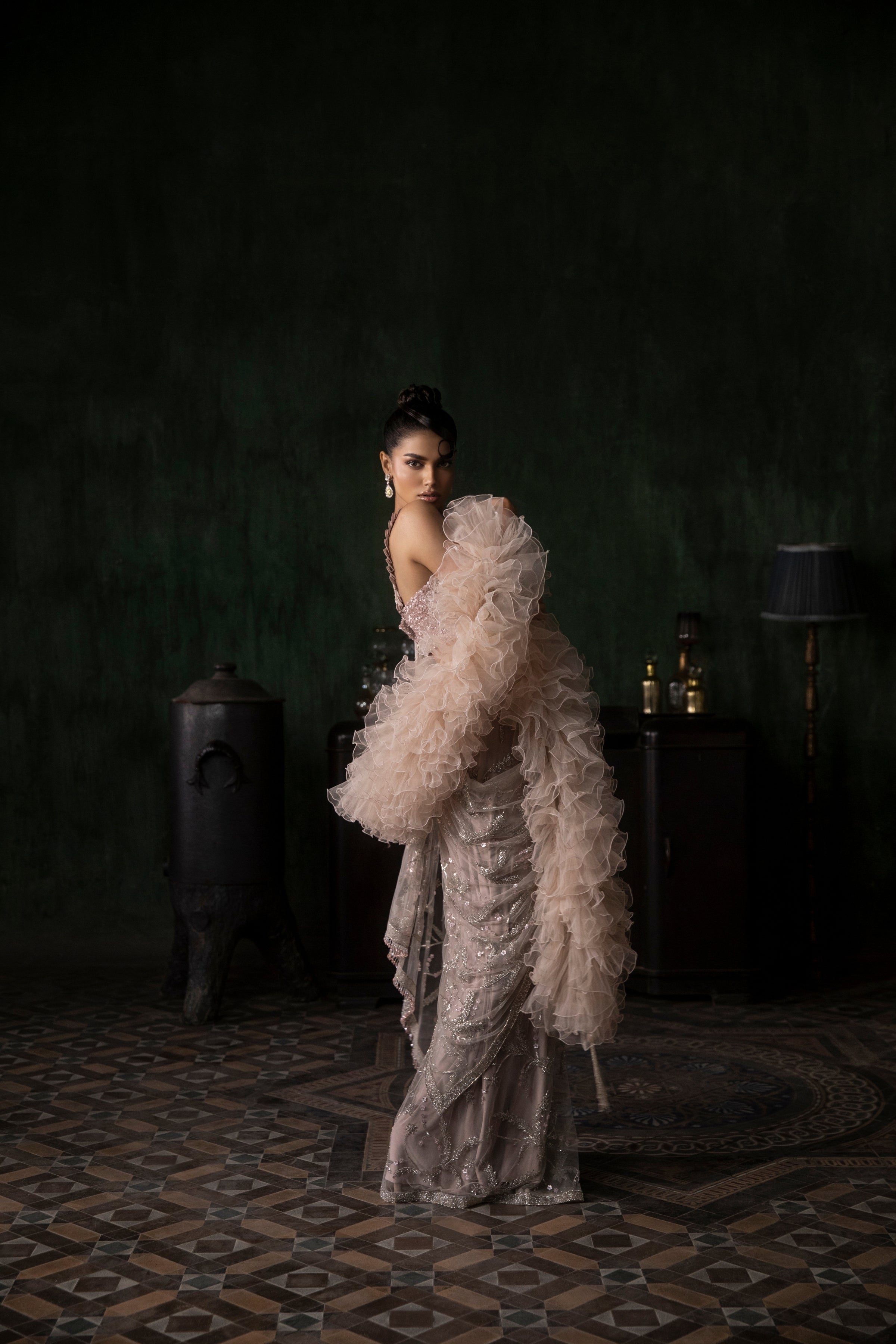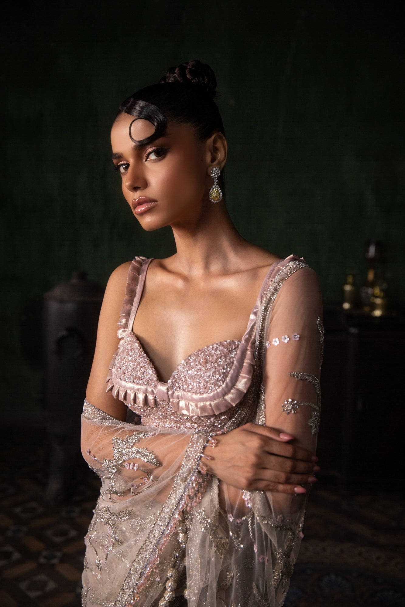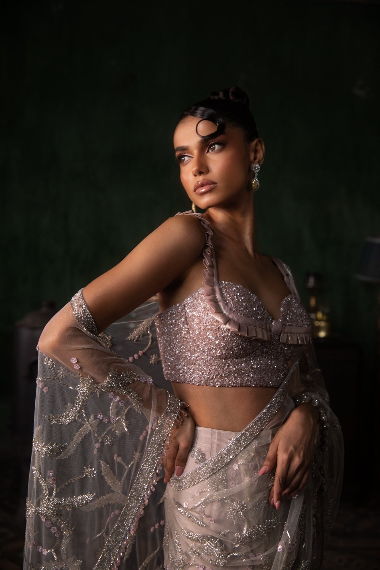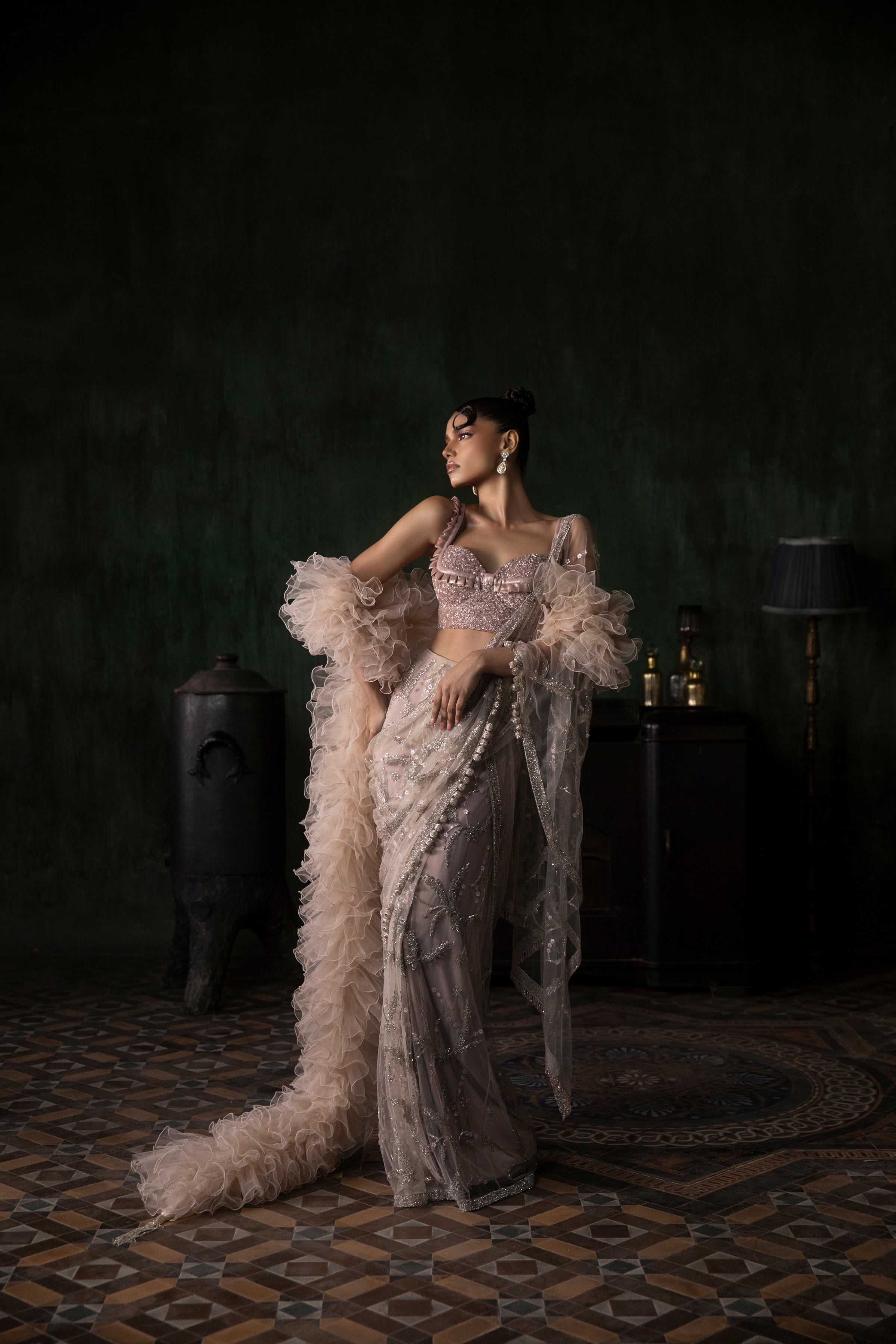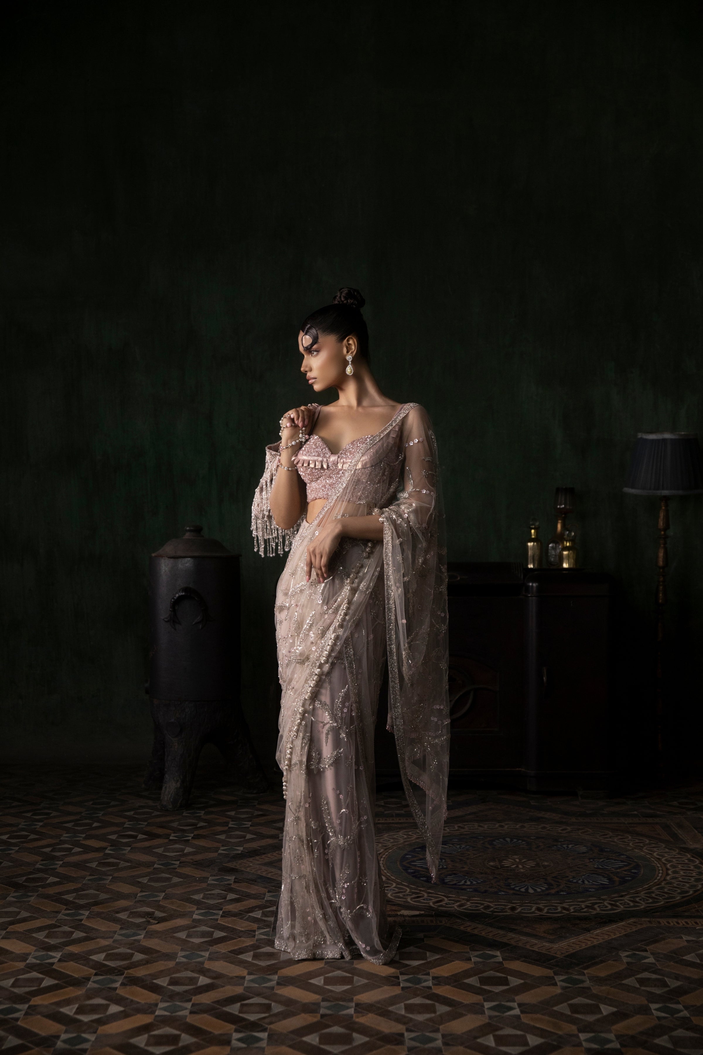 Stone Pre-Stitched Sari With Sequinned Blouse