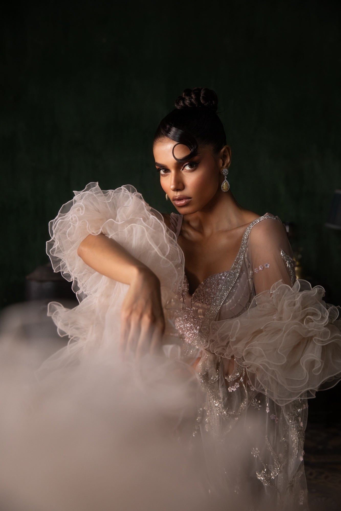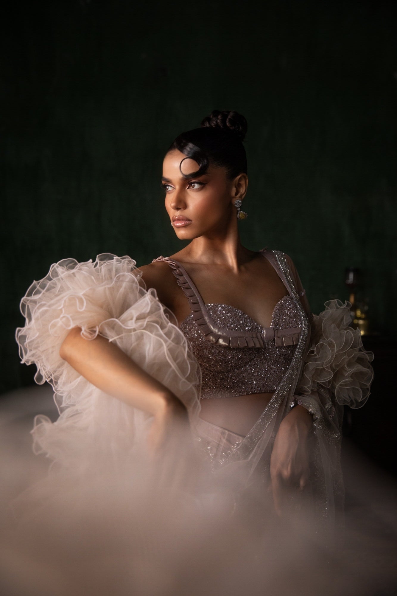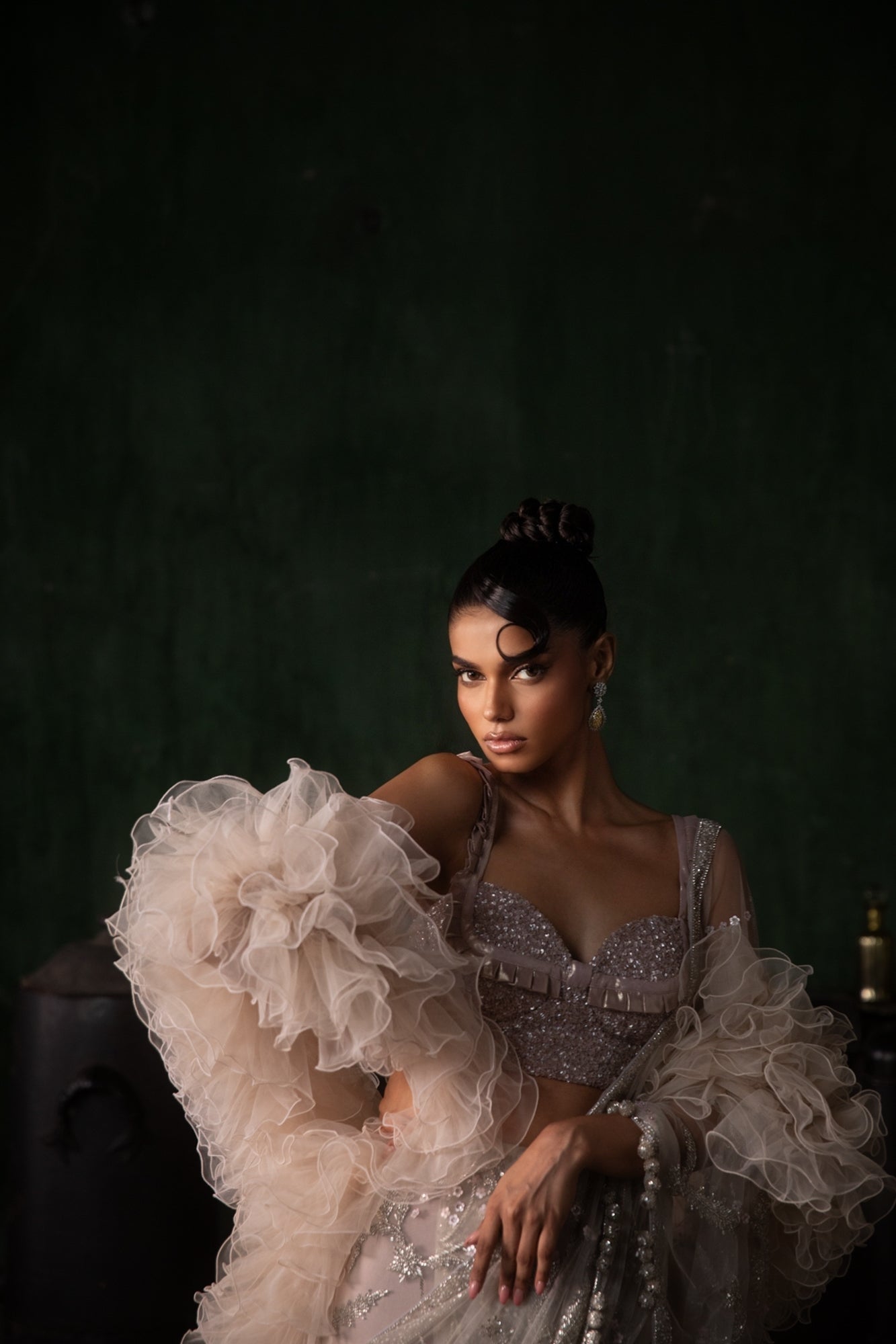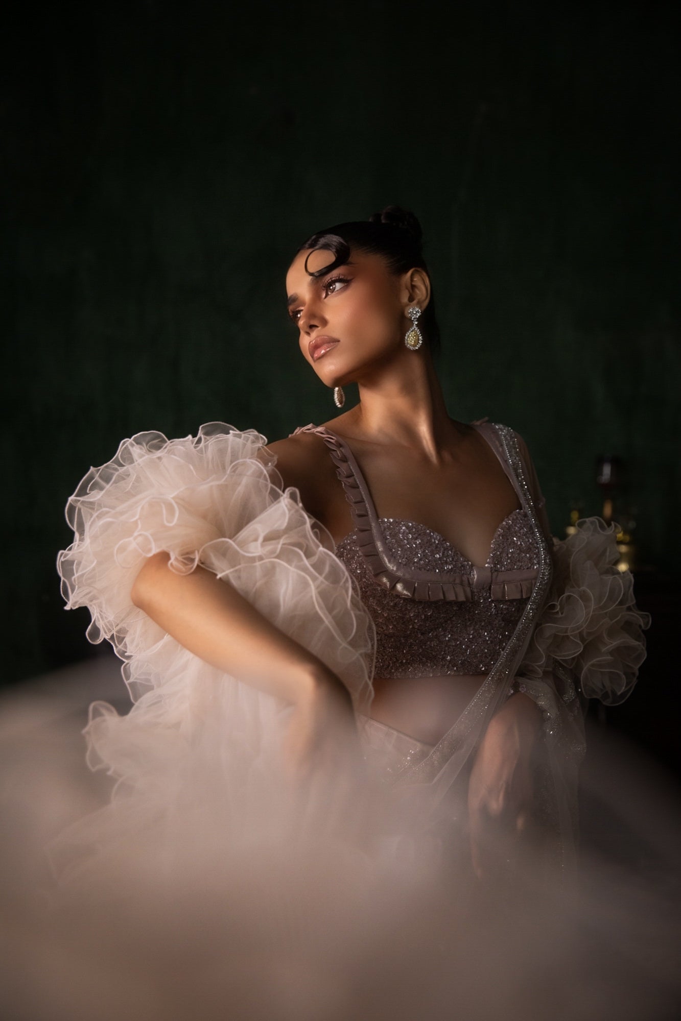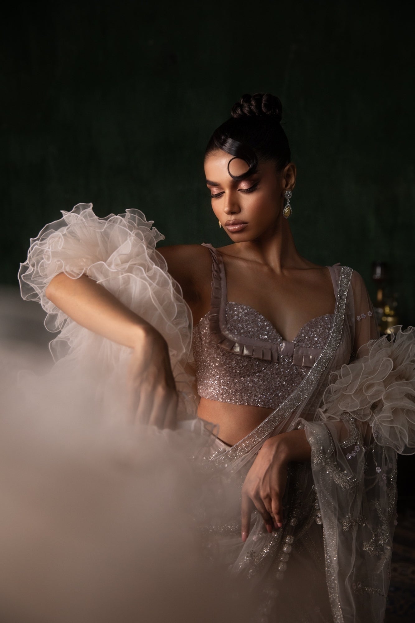 Stone Pre-Stitched Sari With Sequinned Blouse
