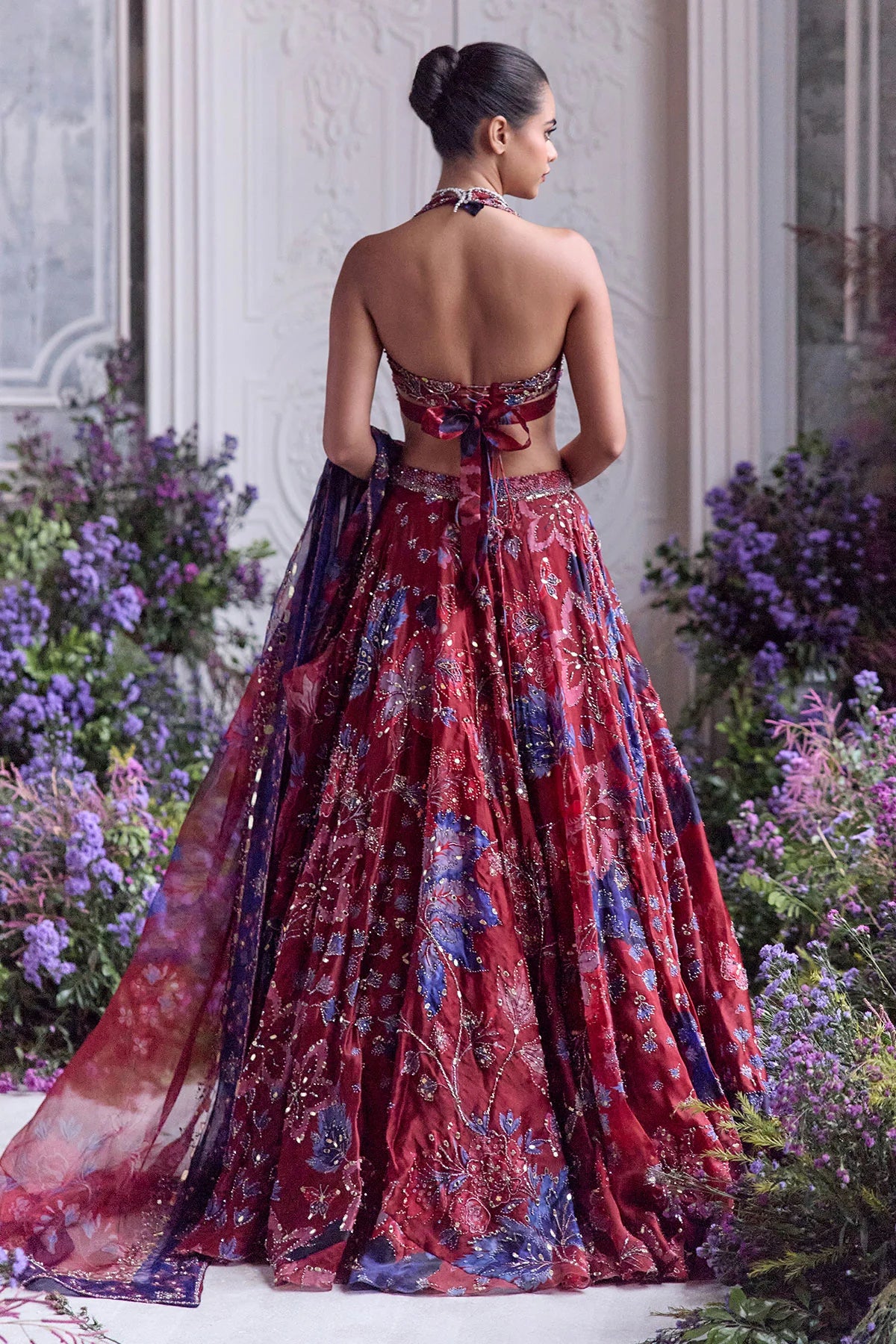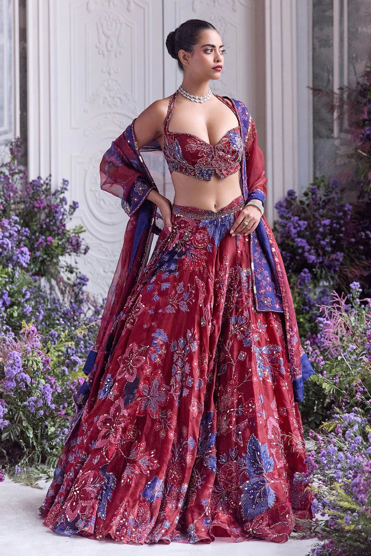 BUTTERFLY BLOUSE PAIRED WITH EMBROIDERED LEHENGA AND DUPATTA